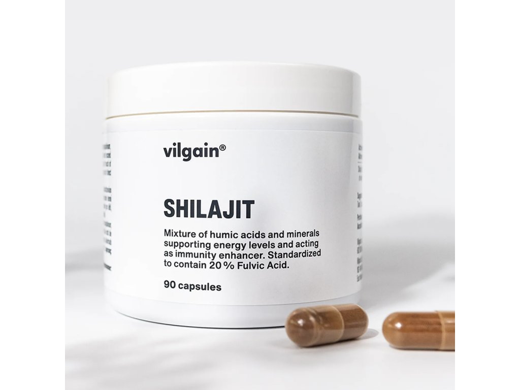 Vilgain Shilajit je prírodná látka vznikajúca rozkladom rastlinnej hmoty v horských oblastiach Indie počas stoviek rokov. Ide o silný adaptogén s antioxidačnými účinkami, ktorý pomáha organizmu zvládať stres a podporuje normálnu funkciu imunitného systému. Každá kapsula obsahuje vysokokvalitný extrakt štandardizovaný na 20 % kyseliny fulvovej – jednej z hlavných účinných látok shilajitu.